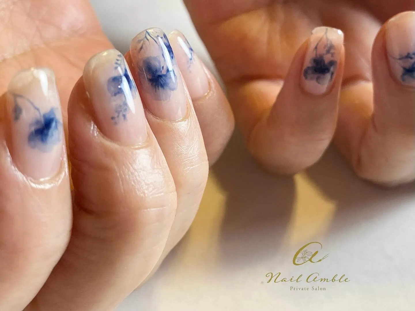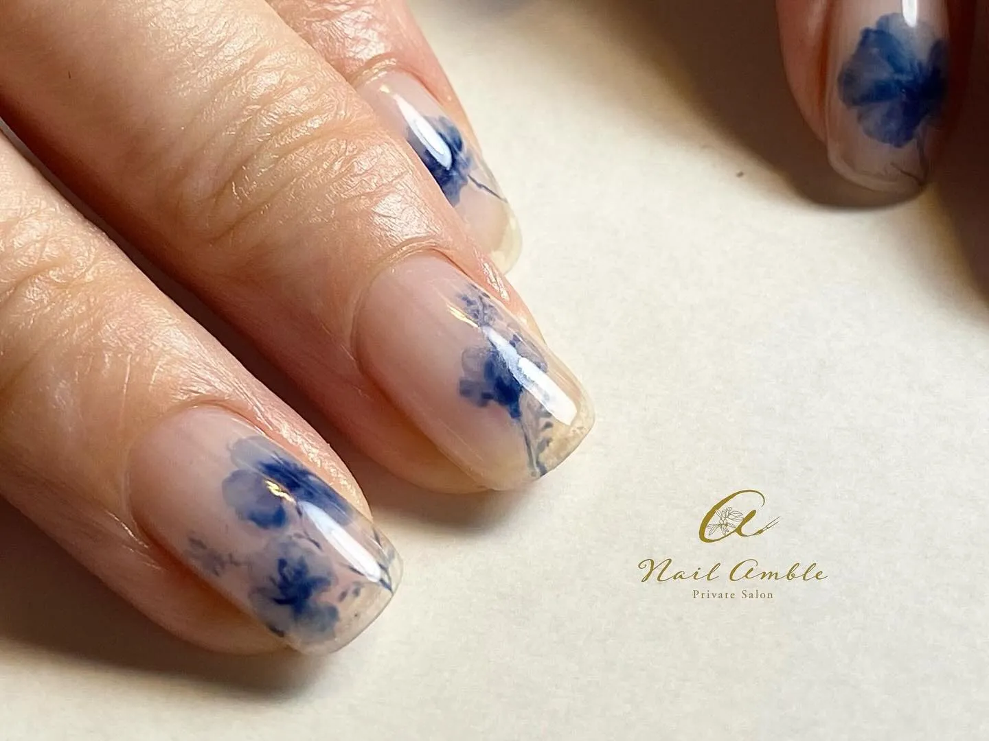 涼しさ満点の夏ネイルデザイン 2025/07/17 暑い熱い夏がやってきましたね! みなさま元気にお過ごしでしょうか? さて、今回ご紹介するのはこちら! 指先から涼しさを感じる、こんなネイルデザインはいかがでしょう!? 陶器の絵付けのお花を意識しながら、描きました。 ブルー一色の濃淡で描くお花は、とても繊細で、奥行きを感じますよね。 これはホントに描いていて、とても楽しかったのです!(あ、毎回楽しませてもらっているのですがね笑) ベースカラーを乗せず、透明のジェルの上に描くことで、こんなに涼やかに仕上がりますよ♡ あ〜、どの角度から見ても美しい〜(うっとり) 『あぁ綺麗〜』を連発しながら(まぁまぁうるさい)、たくさん写真を撮らせていただく時間もとても楽しい♡ こんな感じで、いつも自画自賛(私が)の末、お客様も大満足していただき、お帰りになられます。 浴衣や夏のお着物も似合いそうな、こんなネイルデザイン。 オススメですよ〜 もちの良いジェルを松山市で体験 松山市で手書きアートをオーダー ジェル アート